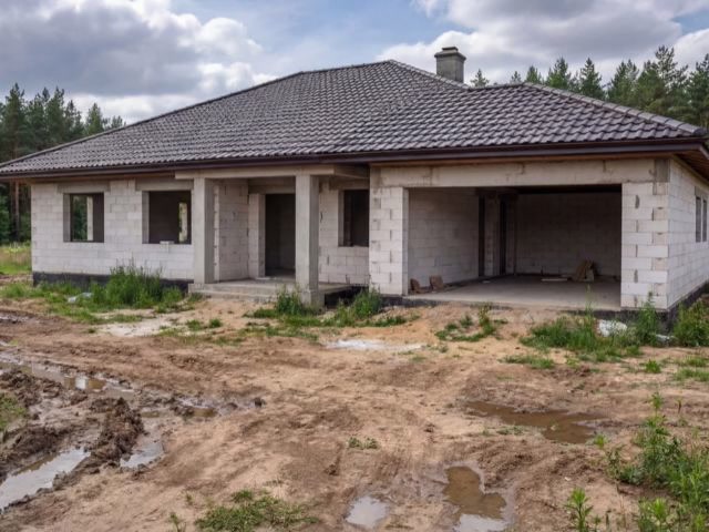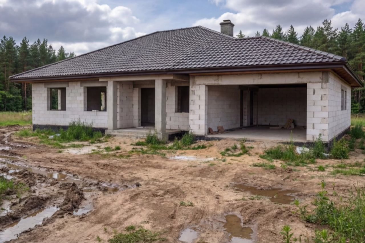 Ten dom jednorodzinny to typowy stary dom do remontu z lat 90. wykonany z surowej cegły silikatowej. Brak warstwy tynku i ocieplenia oraz zniszczone drewniane elementy balkonu i szczytu dachu wymagają kompleksowej modernizacji.